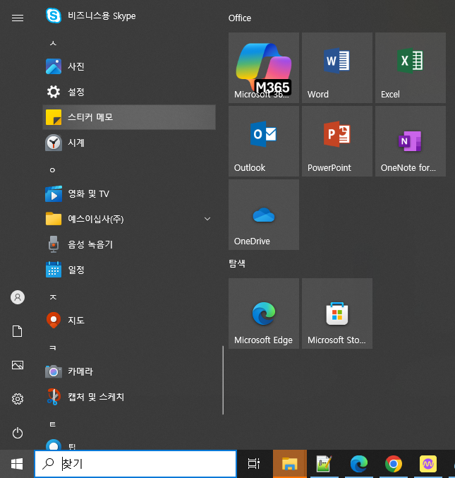 3. 시작 버튼 > ㅅ 영역에 "스티커 메모" 클릭해서 실행