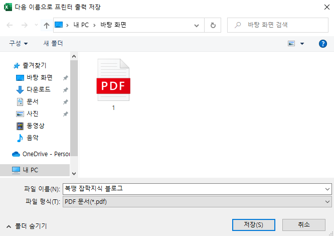 4. PDF 파일을 저장할 경로와 파일명 입력 후 [저장]